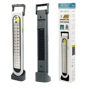Tanım: Solar şarjlı ışıldak fener Pil Kapasite: 3600 Mah Pil: Lithium pil 800 kereden fazla şarj edilebilir Acil durum ışığı 5 farklı aydınlatma modu Renk: Beyaz, günışığı yüksek ve düşük parlaklık ayarı Solar panel ile şarj edebilme Duvara monte edilebilir Masaüstü sabitleyici ayak ile her alanda kullanıma uygundur USB şarj Şarj Göstergesi 45 SMD Led + 1 COB Led aydınlatma Açma-kapama anahtarı Taşınabilir ergonamik tasarım Uzunluk: 40 Cm 6855T Solarlı Işıldak HEL-6855T 1x USB şarj kablosu Masaüstü sabitleme ayağı