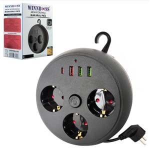WINNBOSS WN-3395 3Lü Akım Korumalı Priz Makaralı Anahtarlı 16A 4000 Watt 3XUSB 1XType-c