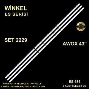 Ürün Kodu WINKEL SET 2229 Birim ADET İçerik 81 CM / 8LED / İçerik İçerik İçerik Marka AWOX İnç 43" Açıklama AVOX 43110 AWOX 43110, TELEFOX 43TFH4300 LED BAR BACKLIGHT , JL.D43081330-349AS-M, DLED43HD 3X8 1002 , 31.11.043000015 02 , AWOX U4300STR , AWX-10943ST , LED BAR ES-686 GEN-686 GEN686 SET-0686 SET686 STL1745T 1745T 10108983 Kod 43-044 Birim Set LD Kodu LB1586 Marka AWOX İnç 43 Grup Ledler Alt Grup DLEDLER Şerit Adet 3 Açıklama 43TFH4300 43IH43ST U4300STR , AWOX 43110 SOKETİ BAŞTA OLAN MODEL