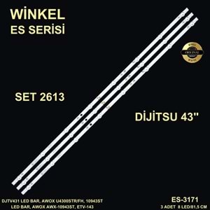 od WİNKEL SET 2613 Marka DİJİTSU İnç 43" Grup TV LED Led Sayısı 8 Uzunluk 81,5 Es Kodu ES-3171/8 Orjinal Kod DLED43HD 3X8 1002, 31.11.043000015 01, 31.11.043000015 02 JL.D43081330-269BS-M 17BG430 KJ43D08-ZC22AG-13E, 3030KJ430041E Uyumlu Markalar AWOX Açıklama DJTV431 LED BAR, KJ43D08-ZC22AG-13E 303KJ430041E 8S1P 8 LEDLİ, AWOX U4300STR/FH, 10943ST LED BAR, AWOX AWX-10943ST, LED BAR, DLED43HD 3X8 1002, ELECTROMASTER, ETV-143 ES-3171 ES 3171 Kod 43-071 Barkod 3400000013159 Birim Set LD Kodu LB5026 İnç 43 Grup Ledler Şerit Adet 3 Açıklama DJTV431 DJTV431 U4400STR AWOX U4300STR/FH