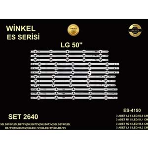 Kod WİNKEL SET 2640 Marka LG İnç 50" Grup TV LED Led Sayısı 5 Uzunluk 49,3-59,2 Es Kodu ES-4150-L1-R1-L2-R2/5 Panel Kodu LC500DUH (PG)(F1)| LC500DUH-PGF1|LC500DUHPGF1 Orjinal Kod R1: 50" V14 sDRT REV0.6 6 R1-Type 6920L-0508A 6920L-1820B L1: 50" V14 sDRT REV0.6 6 L1-Type 6920L-0509A 6920L-1821A R2: 50" V14 sDRT REV0.6 6 R2-Type 6920L-0510A 6920L-1822A L2: 50" V14 sDRT REV0.6 6 L2-Type 6920L-0511A 6920L-1823A Uyumlu Markalar - Açıklama 50LB670V|50LB671V|50LB672V|50LB673V|50LB674V|50LB675V|50LB676V|50LB677V|50LB678V|50LB679V R1: 50" V14 sDRT REV0.6 6 R1-Type 6920L-0508A 6920L-1820B L1: 50" V14 sDRT REV0.6 6 L1-Type 6920L-0509A 6920L-1821A R2: 50" V14 sDRT REV0.6 6 R2-Type 6920L-0510A 6920L-1822A L2: 50" V14 sDRT REV0.6 6 L2-Type 6920L-0511A 6920L-1823A LC500DUH (PG)(F1)| LC500DUH-PGF1|LC500DUHPGF1 ES-4150 ES 4150
