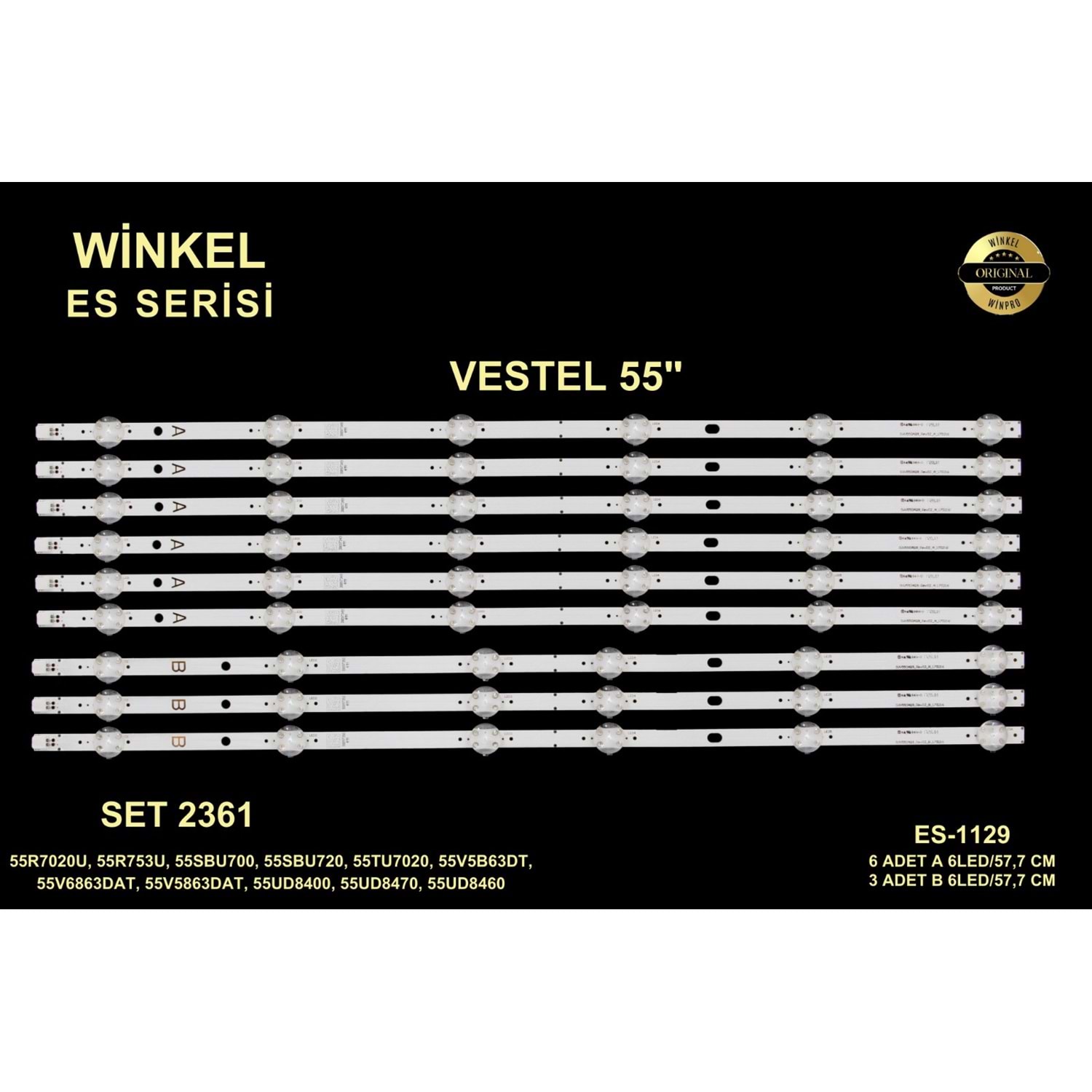 Vestel Seg Regal Tv LED BAR 55 inç 9lu takım A6-5m 57,7 cm B3-5m 57,7 cm uyumlu tv kodları VES550QNYL-2D-N01 SVV550AQ9_REV02_B_170216 284250 E9 Ürün Kodu WİNKEL SET 2361 Birim ADET İçerik A-B 6 LED / 57,7 CM İçerik İçerik İçerik Marka VESTEL İnç 55" Açıklama V10113424 TELEFUNKEN 55TU7020 LED BAR BACKLIGHTS , V10121066 VESTEL 55UD8460 LED BAR BACKLIGHTS , V10117958 VESTEL 55UD8500 LED BAR BACKLIGHTS , V10113280 REGAL 55R7020U LED BAR BACKLIGHTS , V10118812 VESTEL 55UD8450 LED BAR BACKLIGHTS , V10110889 VESTEL 55UD8400 LED BAR BACKLIGHTS , V10122019 TOSHIBA 55V6863DAT LED BAR BACKLIGHTS ES-1129-SET-1129 23548235-55UD8400 JL.D55061330-078HS-M_V01 (B) 30101770, JL.D55061330-078AS-M_V01 (A) 30101769, 23459203 SVV550AQ9_Rev02_A_170216 (A) 30097349, SVV550AQ9_REV02_B_170216 (B) 30097350, LG Innotek Vestel 55inch 55500 LED ARRAY A-Type REV0.0_171026 (A), LG Innotek Vestel 55inch 55500 LED ARRAY B-Type REV0.0_171026 (B) KULLANILDIĞI MARKALAR: VESTEL, TOSHIBA, TELEFUNKEN, REGAL, SEG, HITACHI KULLANILDIĞI MODELLER: 55R7020U, 55R753U, 55SBU700, 55SBU720, 55TU7020, 55V5B63DT,10130686 55V6863DAT, 55V5863DAT, 55UD8400, 55UD8470, 55UD8460, 55UD8450, 55UD8500, 55UHL960, 55HK25T74U 55U9401 55R7550 10128758 55SBU725 55NX900 10128585,10124688,55V5863DA,10115214 Kod 55-047 Birim Set LD Kodu LB932 Marka VESTEL İnç 55 Grup Ledler Alt Grup DLEDLER Şerit Adet 6+3 Açıklama 55UD8460, 55UD8500, 55UD8450, 55UD8400, 55R7020U, 55V6863DAT, 55TU7020, 55UHL960 XU55G521, 55V6863DAT 55V5863DAT 55U9401 8211271 8007196 8084863 8050851 8192990 8084863 7942383 8439001 8439000 7942384 8065084 7965245 8189196 8439000